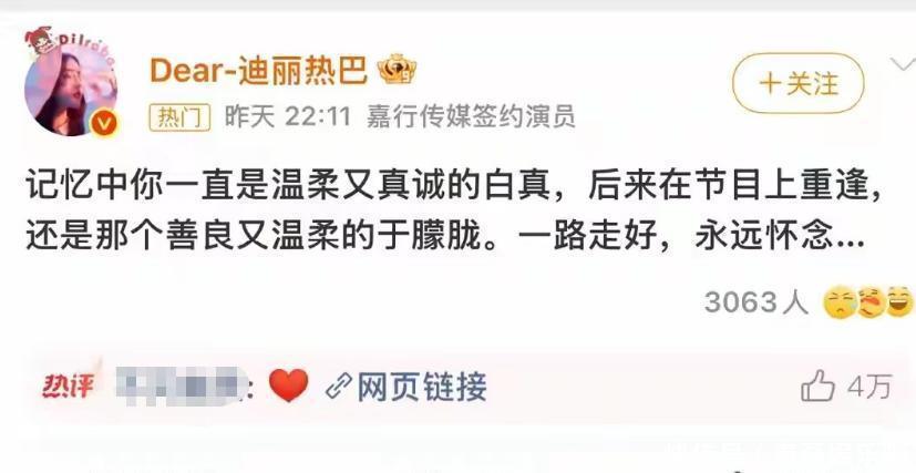 娛樂圈的明星們也是紛紛發(fā)文悼念,楊冪的言語(yǔ)中滿是悲痛,兩人不僅一起拍過戲,平常的感情也是很好的,熱巴也發(fā)文了,他們兩人是老鄉(xiāng),是搭檔,兩人就像好朋友一樣,還有許多與他合作的女演員發(fā)文,表達(dá)了自己的不舍。